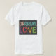 The t-shirt features the phrase "Grrrreat Love" in a playful multicolor design. Each letter bursts with a different vibrant hue, creating a sense of fun and energy. The "Rs" are the stars of the show, with a bold, slightly jagged font that emphasises the playful growl in "Grrrreat."
