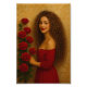 "An elegant and captivating portrait of a woman in a flowing red dress, surrounded by vibrant red roses. This romantic and artistic design blends classic beauty with modern digital artistry, making it perfect for home décor, gifts, and special occasions. Ideal for wall art, posters, greeting cards, and personalised products.