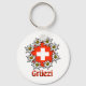 Stylised edelweiss surround a Swiss flag with the friendly Swiss greeting below.