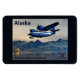 A postage stamp of a fictitious independant Alaska depicting a Grumman G-21 Goose amphibious aeroplane in service with the Alaska State Troopers over water with mountains in the background. Text reading, Alaska", "POSTAGE 20 NUGGETS" and "Alaska State Troopers Grumman G-21 Goose" also appear.