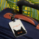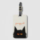 This is a minimalist luggage tag design with a flat illustration of a black grumpy cat. You can customise the text!