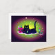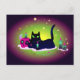Big Black Grumpy Cat Vinsant lies next to the pink skull and green occult candles. He is displeased and rolls his eyes. Cool postcard for a Halloween party or just a beautiful present for a gothic friend or a witch friend