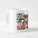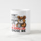 A grumpy cartoon bear is holding a cup of coffee, looking displeased with having to be awake. Bold red and black letters above and below the bear proclaim, "I DIDN'T CHOOSE THE MORNING LIFE THE MORNING LIFE CHOSE ME."
