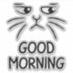 This sticker features a black and white illustration of a grumpy-looking cat with the text "GOOD MORNING". It's a fun and relatable way to express your feelings about mornings.