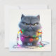 This hilariously grumpy gray cat tangled in colorful Christmas lights is perfect for adding humor to your holiday greetings. Let this moody feline bring laughter to friends and family this season!