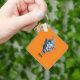 A grumpy looking goblin, frontside view, created with AI art, with the word "Boo" on the front of the keychain. You can easily replace this word by a word of your choice. You can as well change the colour of the background.