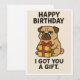 A hilariously grumpy pug sits with a birthday present, perfectly capturing that “I showed up, here’s your gift” energy. With bold text saying “Happy Birthday – I Got You a Gift,” this design is a playful and sarcastic way to wish someone a happy birthday. Great for dog lovers and fans of dry humour, it’s ideal for birthday cards, T-shirts, mugs, and more on Zazzle.