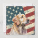 Grunge American Flag Golden Retrieve Dog Flat Card