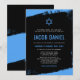 Cool blue and black Bar Mitzvah invitations, that are sure to impress. Modern fonts with a black and blue grunge background.