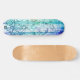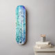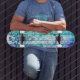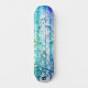 Dd brand skateboard, with graphic artwork of a grunge style blue and green stained wood with floral stencils. Customise to add your own text.