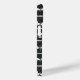 Distressed denim Halloween pattern phone case with bats, skulls, and dark heart designs on a black and cream grid. Gothic, grunge, and eerie aesthetic—ideal for spooky décor, alternative gifts, and Halloween party style.