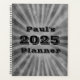 This yearly planner features a grey striped, grunge starburst pattern on it with customisable text that says, "Paul's 2024 Planner" on it but you can change it to say whatever you want.