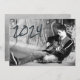 Son's graduation photo card with text on reverse for party invitation. Add a large photo to cover the front, with year of event in large print. His name and school can be printed at the bottom, with more information on reverse. Grunge style numbers and lettering in dark blue and white. The subject of the photo should be aligned to the right in this design.