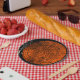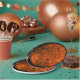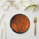 Halloween paper plates with an orange mottled background and grunge border with spiderwebs and spiders.