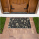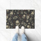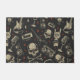 Grunge style skull, crossbones & various musical instruments on black background, seamless repeat pattern
