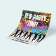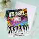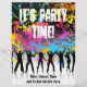 Grunge style party flyer with people dancing on paint splat background