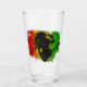 © Sunny Mars Designs. Distressed Green, Yellow and Red Reggae Colours Guitar Playing Rastaman – Cool customisable Jamaican glass with a silhouette of a Rastafarian man singing music and playing guitar on abstract green, yellow and red Jamaica colours background..