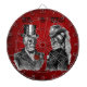 This is an awesome design featuring a man and wife skull couple. It's on a goth/grunge red background.
