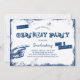 Funky vintage navy and white text for a grunge style surprise birthday party. Personalise this design by changing the text, text colour or style.