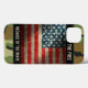 This patriotic Case-Mate Barely There iPad mini Retina case has a khaki green, brown and black style camouflage background pattern with a red, white, and blue grunge American flag over top of it with the words "Home of the free, because of the brave". Thank your favourite soldier or military personnel with a fitting tribute to their service. If you need assistance, email niteowlstudio@gmail.com.