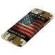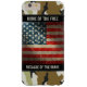 This patriotic iPhone 6 Plus case has a desert style camouflage background pattern with a red, white, and blue grunge American flag over top of it with the words "Home of the free, because of the brave". Thank your favourite soldier or military personnel with a fitting tribute to their service. If you need assistance, email niteowlstudio@gmail.com.