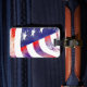 Luggage tag featuring a grunge variation of the USA flag with stars and stripes.