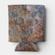 Fascinating photo of authentic grungy and rusty rock texture. There is a vertical semitransparent name banner. Banner is black, and text is light grey or light brown.