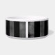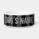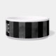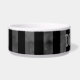 A cool dog food dish with a grungy cool black and grey striped pattern on it. Add your pet's name to it.