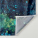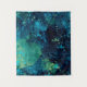 A grungy mixed media design in a turquoise and yellow colour palette, on a dark background.