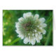 Eine grosse einzelne weisse Kleeblüte vor grünem wiesenhintergrund ist auf dieser Grusskarte. Die Karte ist blanko.