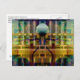 "Gryphon Tails" Postcard with digitally enhanced original mixed media fluorescent colour art assemblage photographed in black (ultraviolet UV) light created by contemporary artist Ralph Jones inspired by stylised imagery of Bronze Age cultures of the ancient Aegean including Minoan Crete, Mycenaean Greece, and the Cycladic islands.