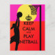 Goal shooter silhouette, keep calm and play netball on a colourful custom postcard. Create your own personalised cards.