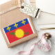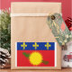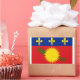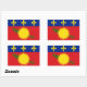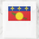 Guadeloupe, an overseas region and department of France located in the Caribbean, has no flag with official status other than the French national flag. In addition to the French flag, an inscribed regional logo on a white field is often used as regional flag, similar to the practice in Mayotte and Réunion. The logo of Guadeloupe shows a stylised sun and bird on a green and blue square with the subscript REGION GUADELOUPE underlined in yellow.