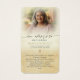 This personalized Spanish funeral sympathy prayer card pairs a cherished photo with the sacred image of Our Lady of Guadalupe and the Spanish prayer “Dios te salve, María” (Hail Mary), beautifully honoring faith, devotion and remembrance. The design features the sentiment “En amoroso recuerdo” (In Loving Memory), a softly faded photo effect and warm vintage tones that create a peaceful and reverent presentation, accented with a gold cross symbolizing eternal faith and hope. Featuring Santa María de Guadalupe (Our Lady of Guadalupe) alongside the traditional Ave Maria prayer in Spanish, these keepsake prayer cards offer comfort to family and friends while celebrating a life remembered through prayer and love, making them ideal for funerals, memorial services, visitations, wakes or Celebration of Life gatherings. Small and portable size of 3.5x2" (wallet-sized). Personalization makes these custom cards unique.