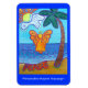 The Beach Angel Painting shows an yellow-orange angel hovering over the ocean. The word "joy" is on a cloud with a heart and has the sun peeking through. The word "peace" is written on the sand beach. A cheerful palm tree sways towards the guardian beach angel. Customise this angel magnet with your own text and images. Make personalised guardian angel magnet gifts!