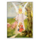 Old picture. Girl with flowers. Threatening snake is a crucifix. Angels help.