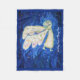 Fleece blanket features a white light guardian angel cradling a baby as the angel flies through the night sky. This is a detail from the angel painting "Care of the Soul." The original art was acrylic on canvas.