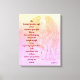 Beautiful Pink and Gold Guardian Angel recovery / healing blessing poem art canvas.