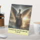 Beautiful picture of a man with his Guardian Angel , is featured on this pedestal table top sign. With a quote from St. Padre Pio, "For whomever is alone...there is their guardian angel". A wonderful gift to give or keep this for your self!
