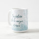 A charming Christmas cup in blue and pastel pink tones, embellished with the figure of a majestic Cascanueces in a detailed uniform that combines both colors, highlighting the different details. In an elegant and bright calligraphy, the phrase: 'Guardian of Eternal Magic' shines with charm, inviting you to dream and celebrate the Christmas season with warmth and style.