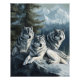 A captivating poster showcasing three majestic wolves resting on rugged mountain rocks. Their tranquil yet vigilant poses evoke the spirit of wilderness and the unyielding beauty of nature. Perfect for nature enthusiasts, wildlife lovers, or anyone seeking inspiration from the untamed world.