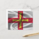 Postcard with the flag of Guernsey in wavy fabric style design. This design features the Guernsey flag colours and design with a beautiful waving material textured effect. This flag design is a great way to show you are proud to be from Guernsey.