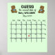 Cute teddy bears with blue bibs on mint green background for Baby Shower game.