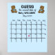 Cute teddy bears with blue bibs on blue background for Baby Shower game.