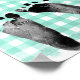 Black baby footprints on white and mint green gingham background for Baby Shower game