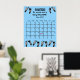 Black baby footprints on blue and white polka dot background for Baby Shower game.