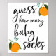 Guess how many baby socks Shower sign for game featuring orange clementines