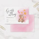 A girl teddy bear baby shower game featuring a simple plain white background, a watercolor bear, pink balloon, gold stars & a babies bottle, and a "guess how many" template that is easy to personalise.