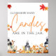 baby shower game guess how many candies poster, fall baby shower game, baby shower games, party games, baby shower decorations, party decorations, poster, hanging poster, colourful poster, personalised poster, baby shower theme, fall theme, autumn theme, floral design, pumpkin design, baby shower decorations, baby shower theme.