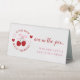 Love is cherry sweet! Bridal shower with cherries tied in a pink bow against a background of pale blush pink and gray